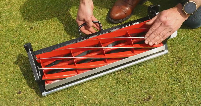 Made of hardened and ground steel the 10 bladed SURE-BLADE cylinder offers a super fine cut perfect for cutting below 20mm to achieve the bowling green finish. The 10 blade cylinder offers a higher clip-rate (131cpm) than that of the 6 blade (79cpm) cutting and can achieve cuts as low as 3mm.