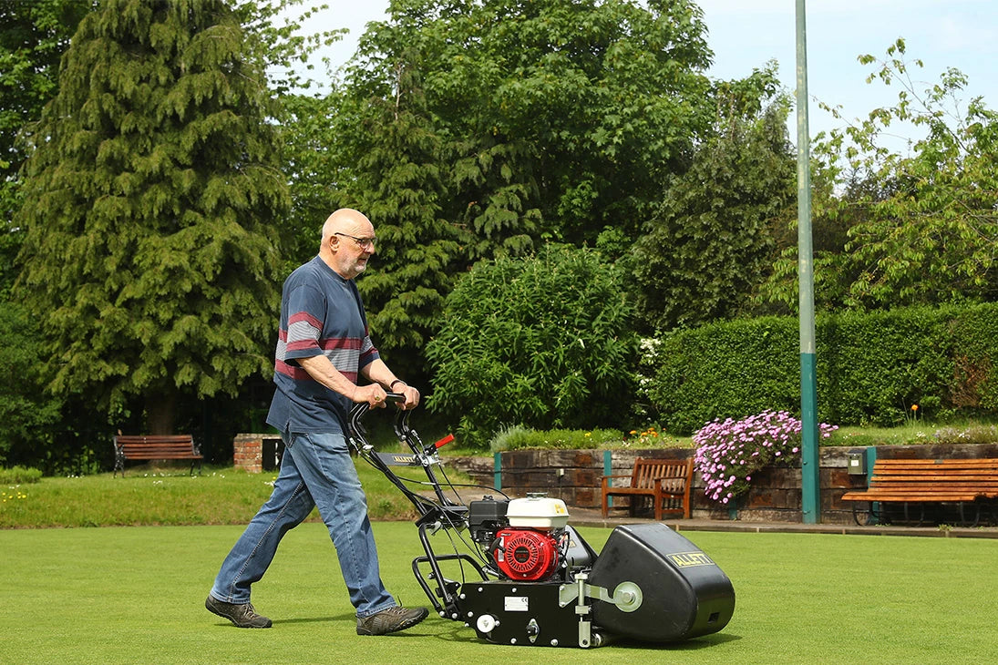 The Allett C20 features a micrometer-style height adjuster, allowing precise cutting from 2.4mm to 19mm — ideal for maintaining low, even cuts on cricket wickets, bowling greens, and fine turf surfaces where accuracy is essential.