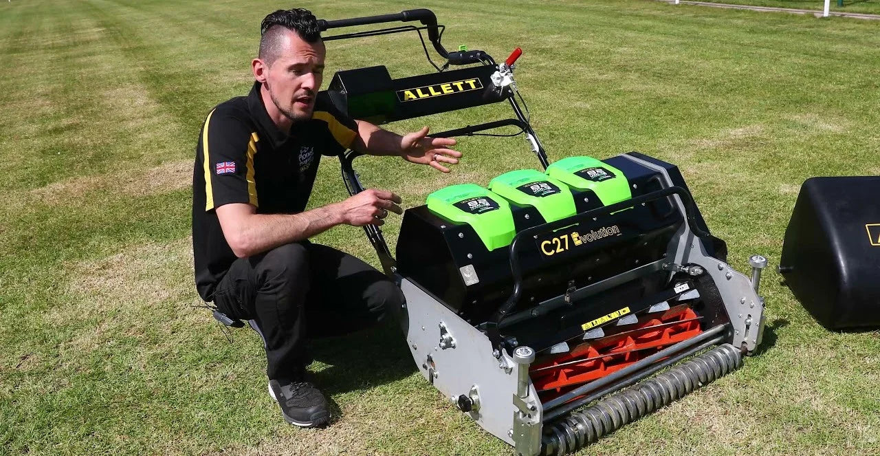 Discover the power and precision of the Allett C27 Evolution in this in-depth demonstration. Watch as this 27-inch professional battery-powered cylinder mower delivers exceptional results on premium sports turf and large lawns. See its interchangeable cartridges in action, effortless height-of-cut adjustments, and signature Allett stripes. Learn how its eco-friendly 82V lithium-ion battery system offers quiet, emission-free performance with up to 2 hours 45 minutes runtime. Perfect for groundskeepers, stadiums, and high-end lawn care, the C27E sets a new standard in turf maintenance.