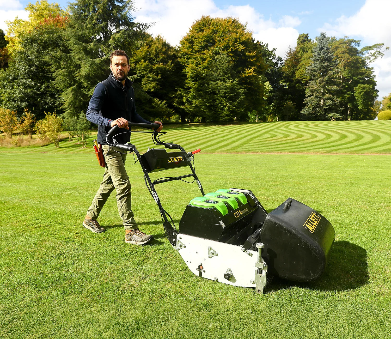 The C27 Evolution is Allett’s flagship electric professional cylinder mower, delivering precision, versatility, and eco-friendly performance for year-round turf care. Designed for grounds professionals, stadium crews, and discerning gardeners, it is powered by advanced 82V 8Ah lithium-ion batteries—combining Allett’s legendary cut quality with the latest in battery technology.