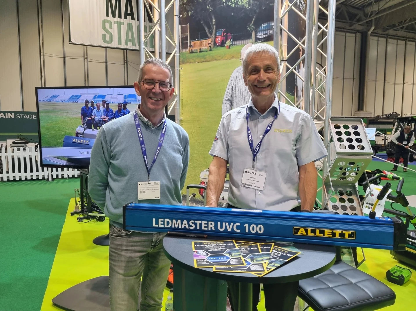 At the SALTEX 2025 tradeshow, Dave Allett and Henk Slootweg attracted strong interest as they presented the benefits of the LEDMASTER UVC 100 for modern turf management. Dave explained how the technology fits into Allett’s commitment to innovation and sustainable lawn-care solutions. Henk, who is from the Netherlands where chemical treatments on turf are prohibited, highlighted the increasing need for non-chemical methods to maintain healthy, high-performance sports surfaces.