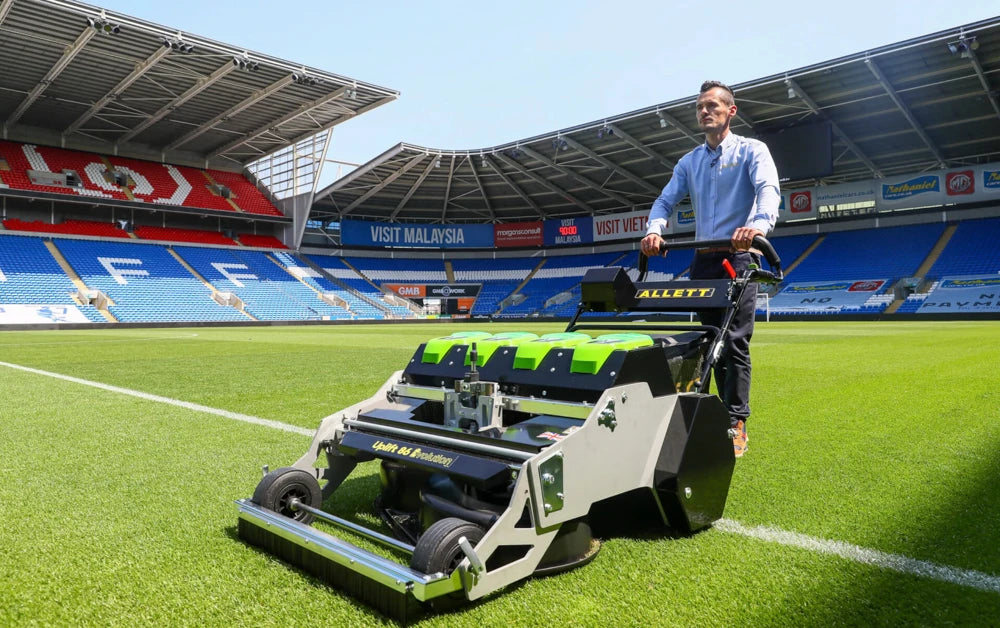 Take a closer look at the Allett Uplift 86 Evolution in action — a high-performance stadium rotary mower engineered for elite-level turf care on football and rugby pitches. This video highlights its upgraded high-lift twin-blade vacuum system, full-width rear roller for defined striping, and 86 cm cutting width for fast, efficient coverage. Watch as the Uplift 86 Evolution makes light work of post-match cleanup, lifting debris with power and precision to deliver a consistently clean, professional finish.