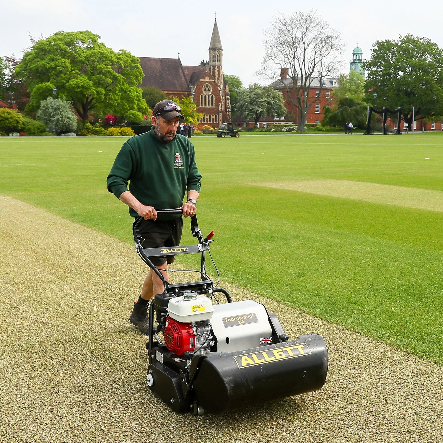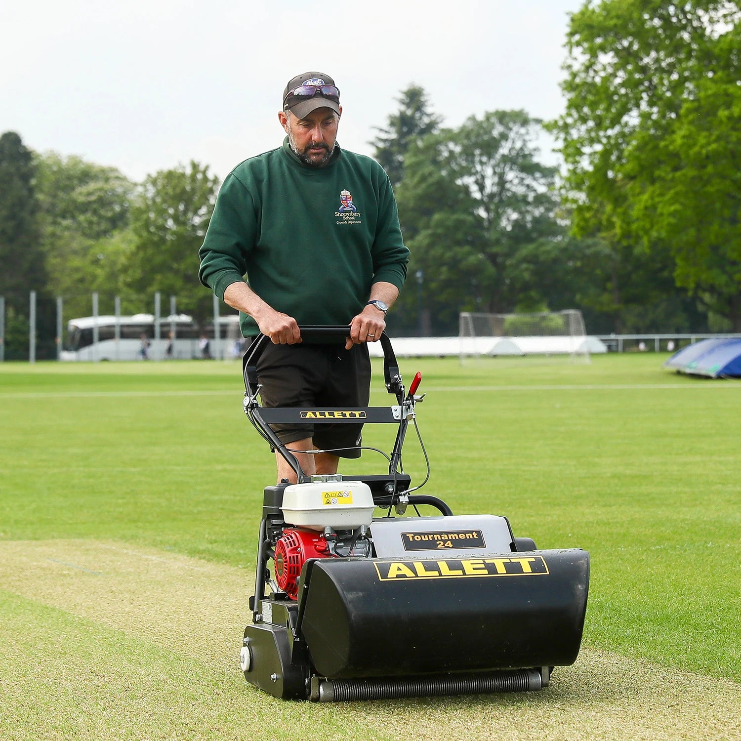 The Allett Tournament 24 has a cutting width of 24 inches (610mm), which is ideal for maintaining cricket wickets, golf greens, tennis, croquet and bowling greens, ensuring a high-quality finish on sports turf.