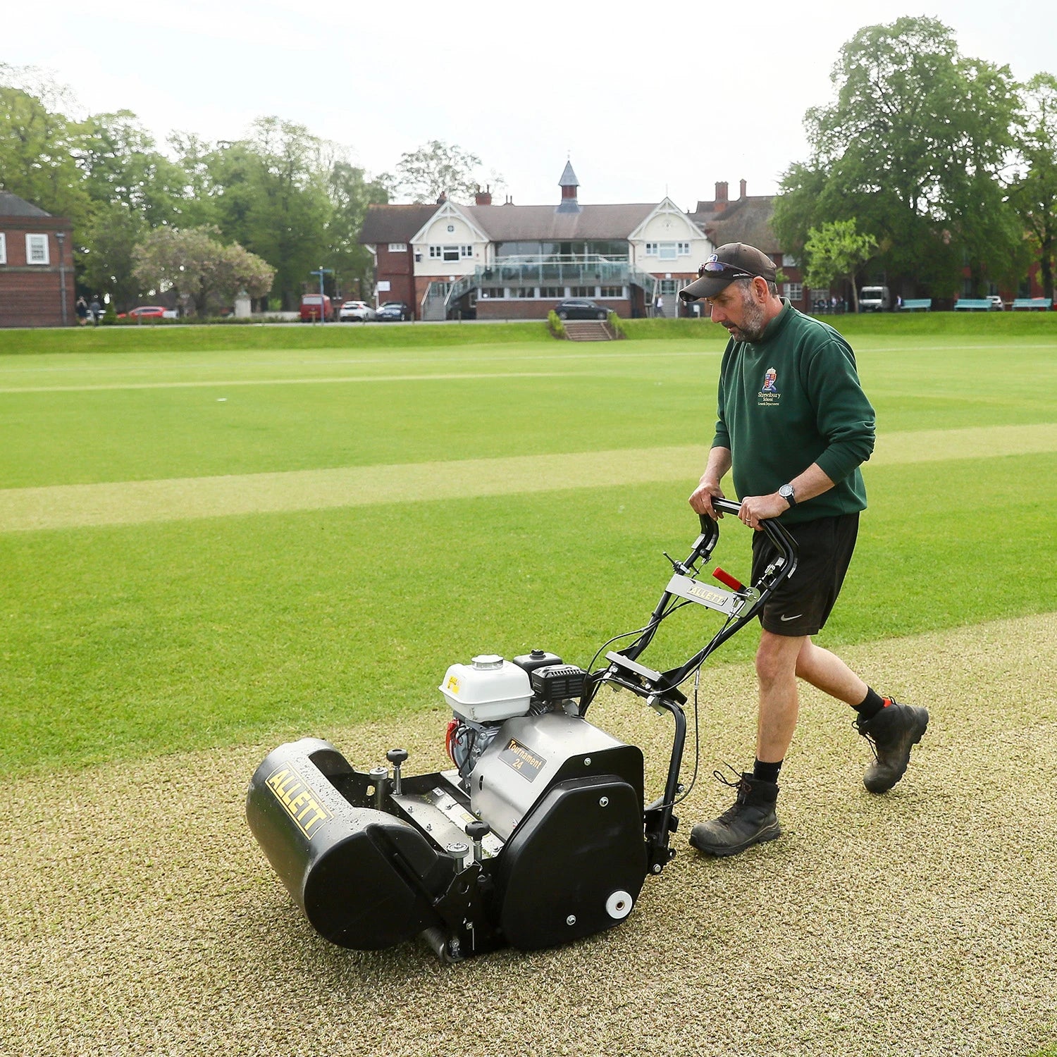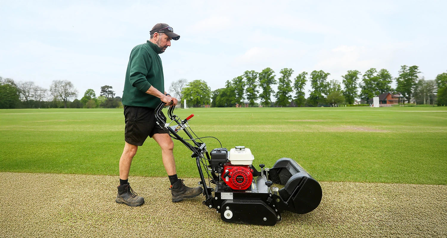 Equipped with a 10-blade precision cylinder delivering 217 cuts per metre, the Tournament 24 produces a consistent, clean cut ideal for cricket wickets, golf greens, and bowling surfaces.